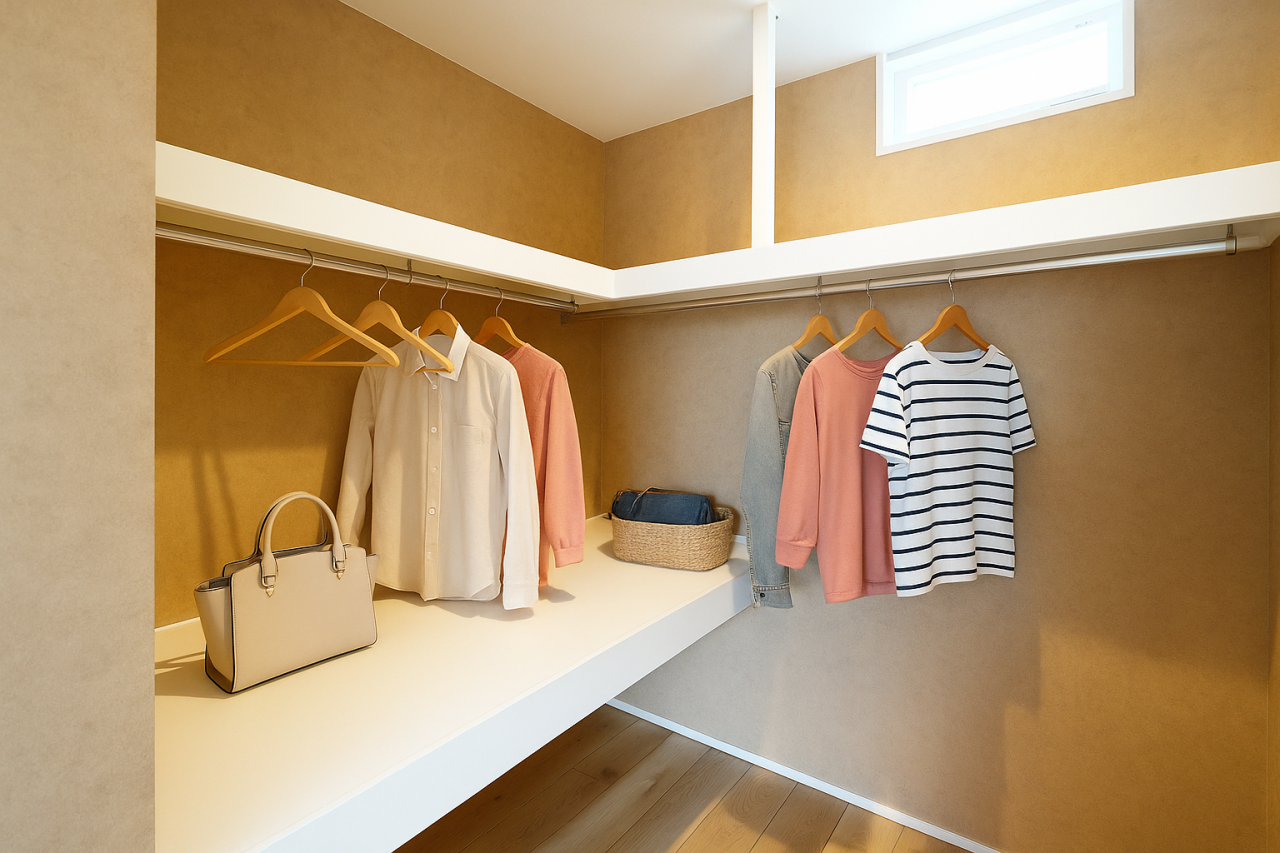 パイプと枕棚に加え、奥行きのある中棚も設けた為、