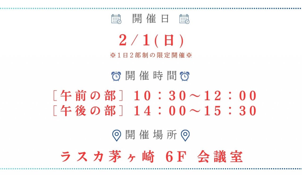 | 日時 | 2026/2/1(日) [AM] 10:30~12:00 [PM] 14:00~15:30 |