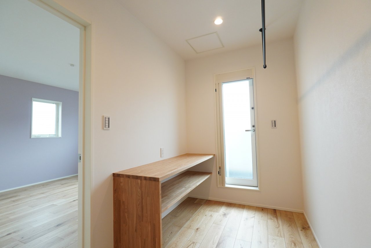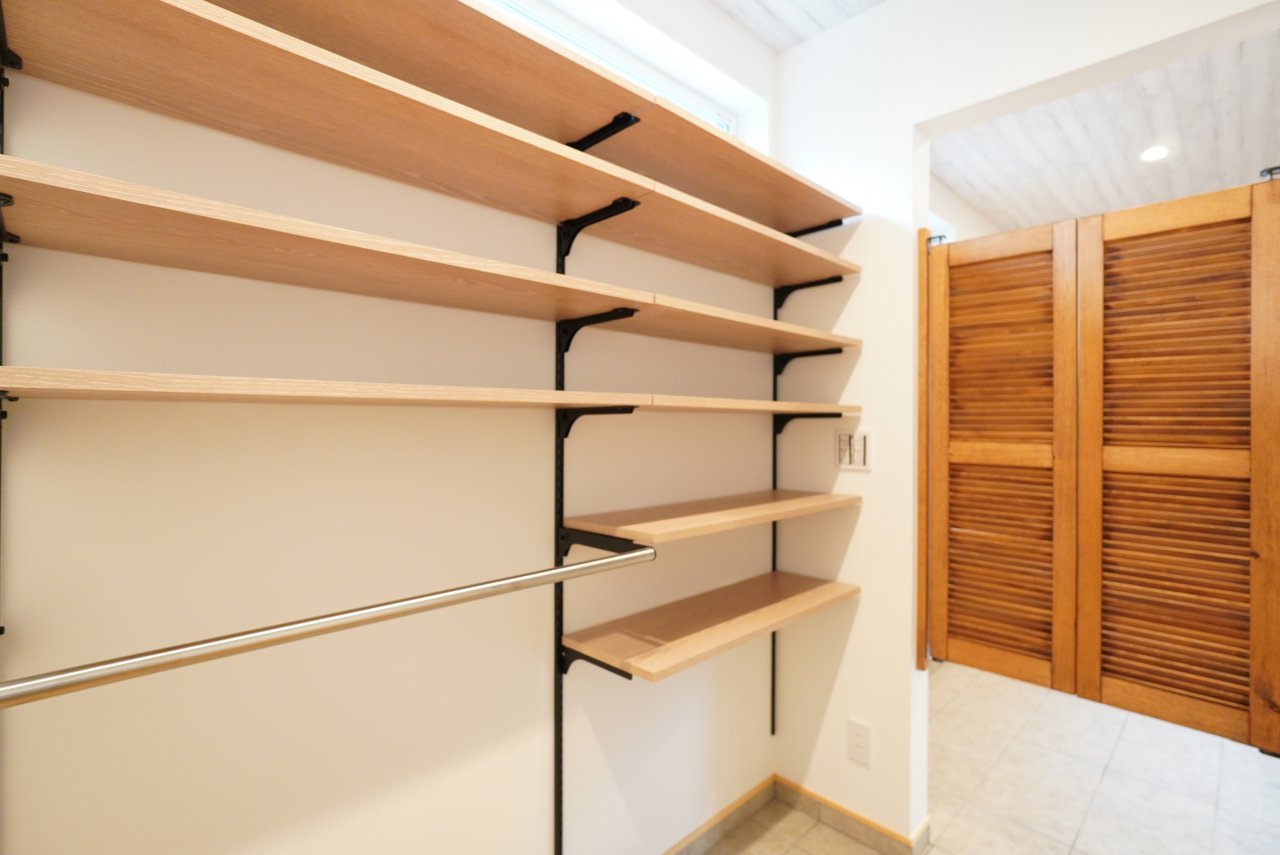 パイプと枕棚に加え、奥行きのある中棚も設けた為、