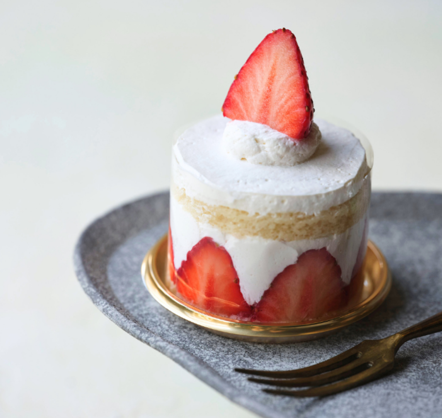 「苺のヴィーガンショートケーキ」は、米粉のスポンジに豆乳ホイップクリーム、そしてフレッシュな苺を使用したこだわりのショートケーキ。