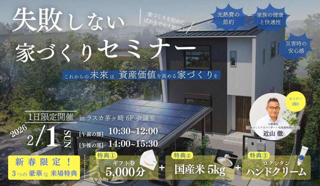 2月1日から家の資産価値を高める!失敗しない家づくりセミナーを開催いたします。