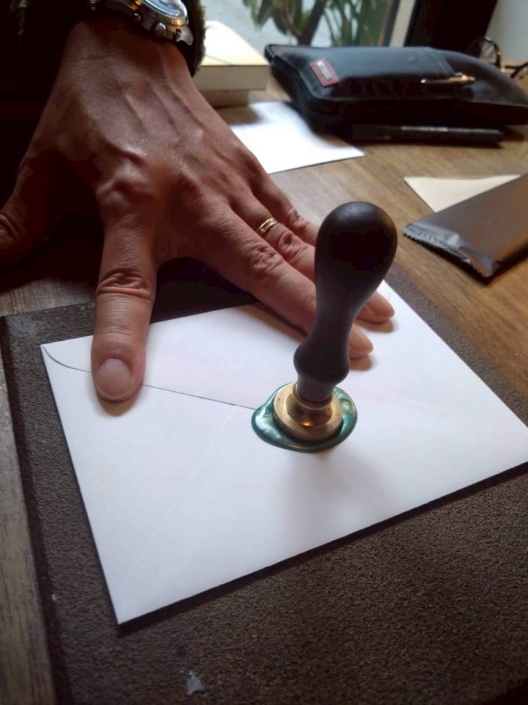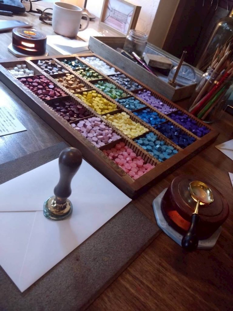 書いた手紙には、シーリングワックスにスタンプで封印。好きな色のワックスを熱で溶かしてスタンプします。まあまあ緊張。