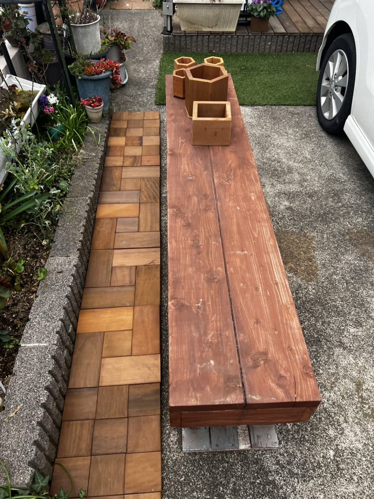 さて、今回の挑戦は以前使用したデッキ材の端材(20cm~30cm程度)を