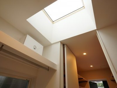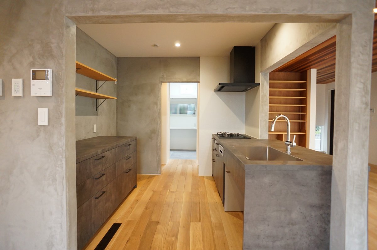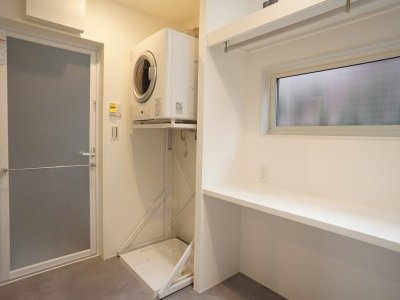 ただデザインがかっこいいというだけではなく、実際に暮らした時の”暮らしやすさ”にも徹底的にこだわりました。帰宅後そのまま浴室まで行けるようにシューズクロークから脱衣所をつなげています。脱衣所はランドリースペースにもなっており、天窓で明るさを確保しました。