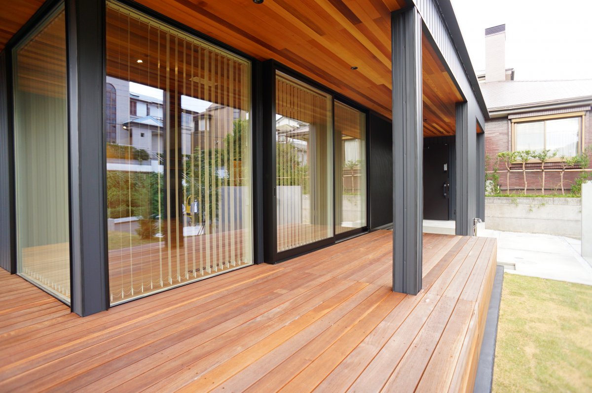 お庭に面したウッドデッキを広々設けました。リビングともフラットにつながっている為、より一体感を感じられます。ご友人を招くもよし、家族と団らんするもよし、ひとりでのんびり読書やコーヒーを飲むのもよし。様々なシーンで大活躍してくれること間違いなし。