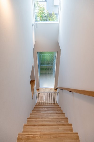 階段上部に設けられた窓から差し込む陽がお部屋に行き渡るよう、スケルトン階段を採用。開放感を感じられる空間に仕上がっています。こんなこだわりも注文住宅ならではの愉しみです。